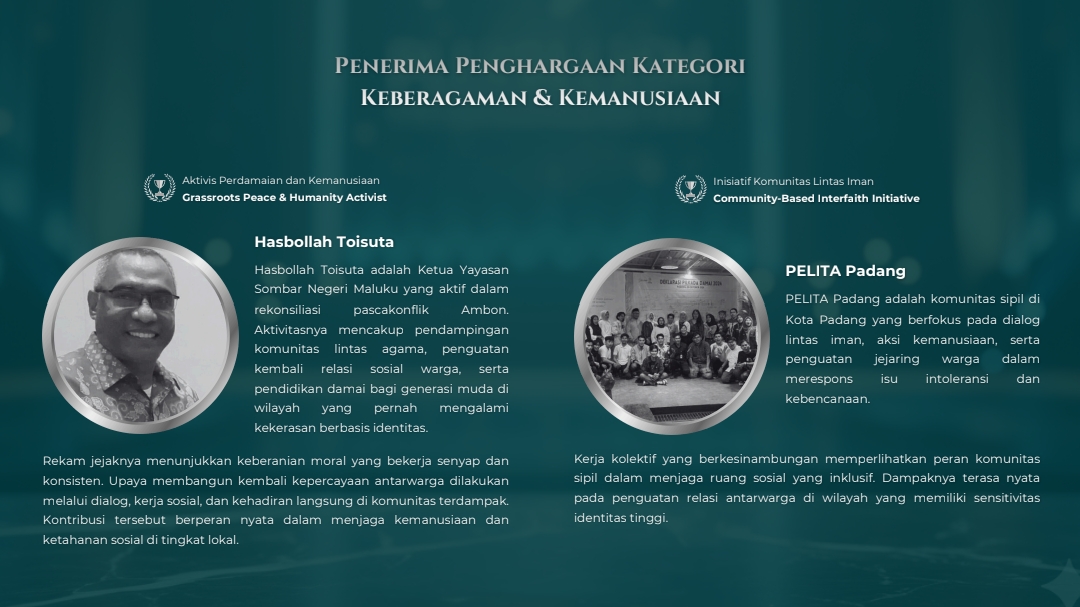 Sebagai Ketua Yayasan Sombar Negeri Maluku, Hasbollah akan mendapatkan penghargaan Riyanto Award dalam kategori Keberagaman dan Kemanusiaan.