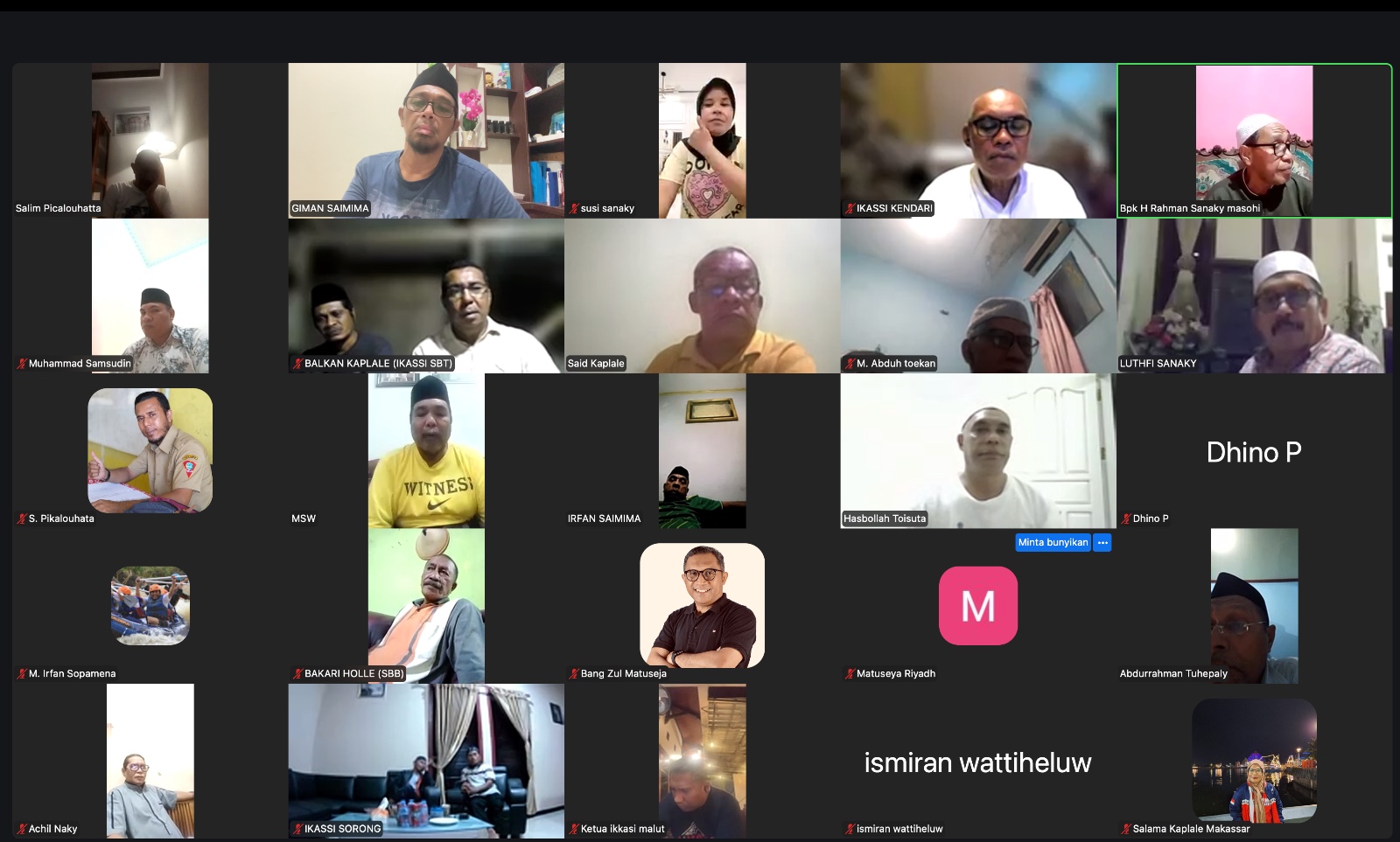 Zoom meeting dihadiri IKASSI Ambon, IKASSI Kendari, IKASSI Makassar, IKASSI Sorong, IKASSI Fak-Fak (termasuk Kaimana, Biak), IKASSI Maluku Utara, Basisda Jabodetabek, IKKASSI Maluku Tengah, IKASSI SBB, IKASSI SBT, dan IKASSI Buru.